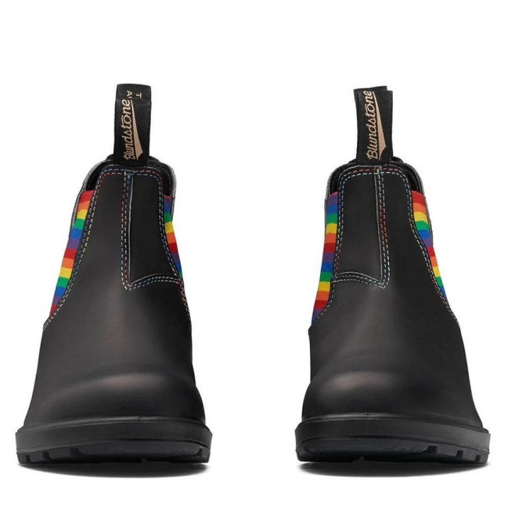 Blundstone Women’s Original 2105 in Black with Rainbow Elastic and Contrast Stitching is for dry feet on a rainy day with a rainbow on the side. That’s comfort, that’s fun. That’s new Blundstone Original Series in Black with Rainbow elastic and contrast stitching. All-season, all-day, all-surface comfort. A rainbow on the side? Well, that’s the silver lining.