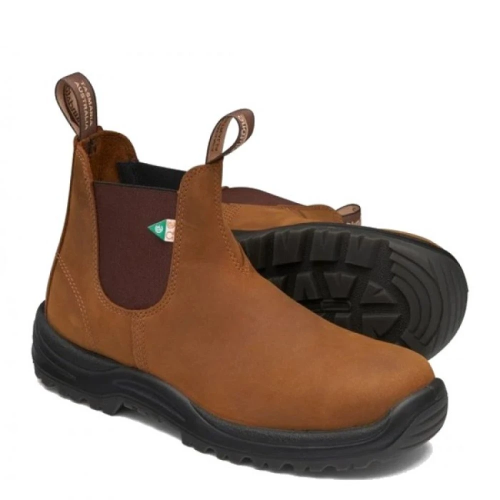 This work boot checks all the safety boxes so you can focus on the job at hand. The Blundstone CSA Greenpatch 164 in Saddle Brown has protective steel toe safety and dry all-day comfort, even on concrete. Flexible, comfortable and pull-on, kick-off easy to keep mud and debris off car mats, indoor carpets and new floors. Lightweight and durable with a sole resistant to electrical, chemical and acid dangers. CSA approved.