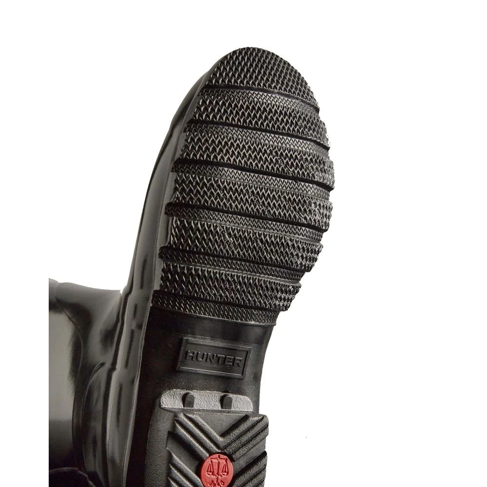 Perfect for wet weather conditions this women’s Rain Boot Boot is a shorter version of the iconic Hunter Original Tall Boot. Formed of natural rubber, each boot is handcrafted and assembled over three days before being vulcanized for superior protection. Featuring the Hunter Original tread pattern, and a comfortable polyester lining, this glossy black waterproof boot is a rainy-day necessity.