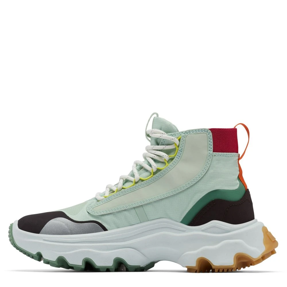 UPPER: Lightweight synthetic and textile material mixes. No-sew TPU overlays. Rubberized TPU print on vamp. Adjustable webbing eyestay system. Rubberized heel cap. Heel gore and double webbing loops for ease of entry. Textile lining. Waterproof construction. Laces are not waterproof.